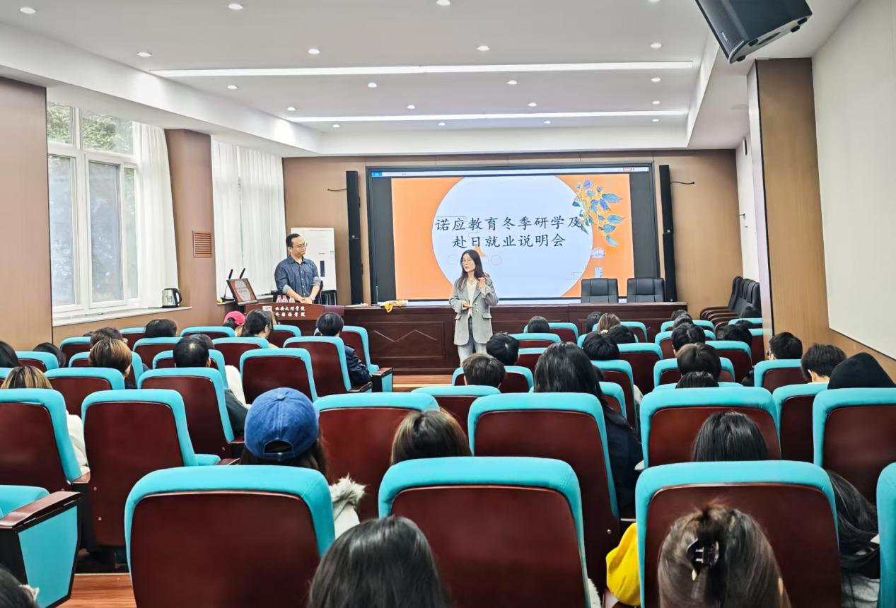 10月28日,诺英教育西北地区负责人段季杰老师受邀到访外国语学院,成功开展了学生冬季研学及赴日就业说明会,日语专业全体师生参加。